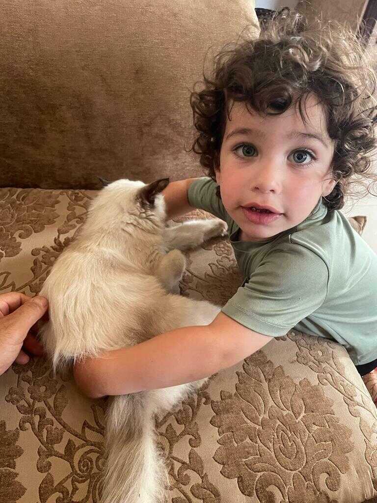They took the kitten in and called it Milka, after Yousef’s favorite chocolate. Yousef loves animals – the family has a dog back home in Medway, Massachusetts named Lily. Okal said the kitten calmed the baby after the panic of the nearby airstrike.