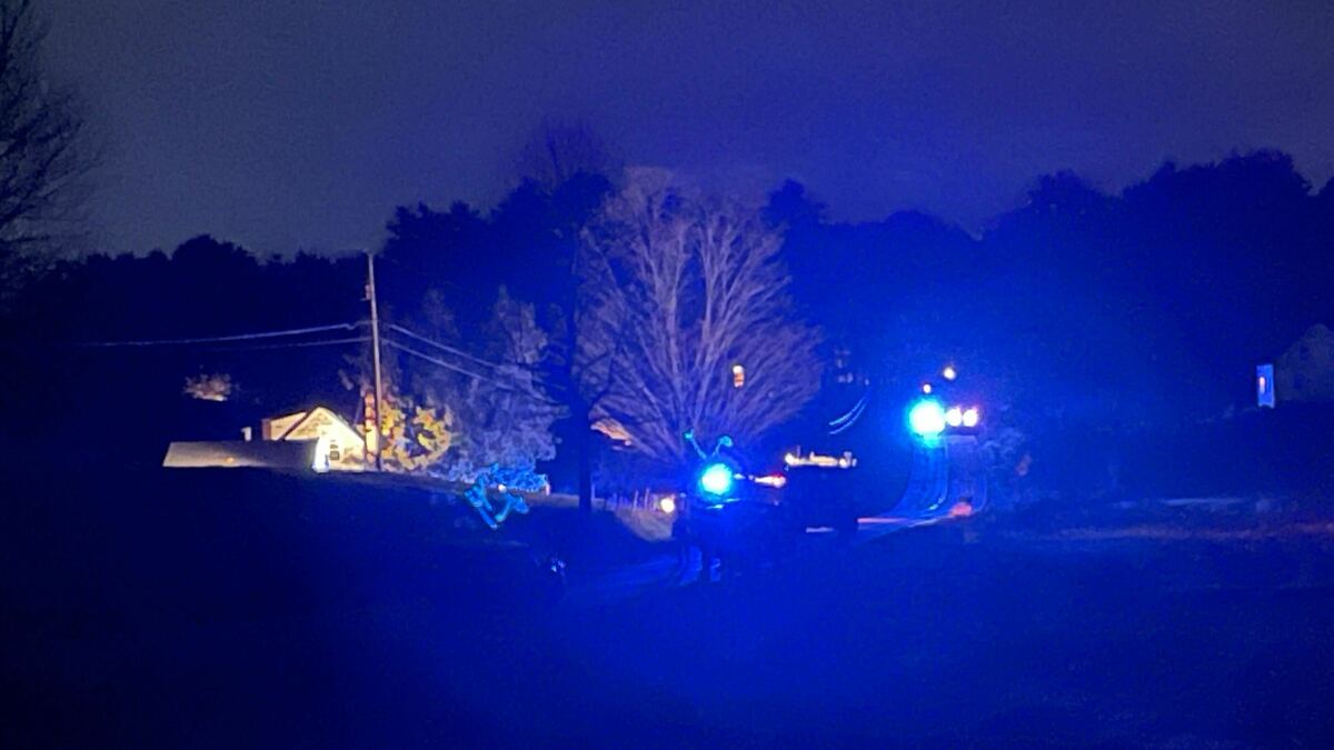 Law enforcement officials surround a house on Meadow Road in Bowdoin, Maine.